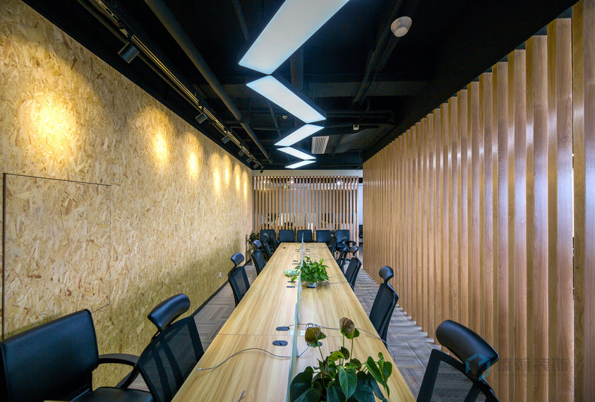 大量使用的木质元素,开放式的办公区域,不规则排布的吊灯,都使人在视觉上感觉空间的开阔。